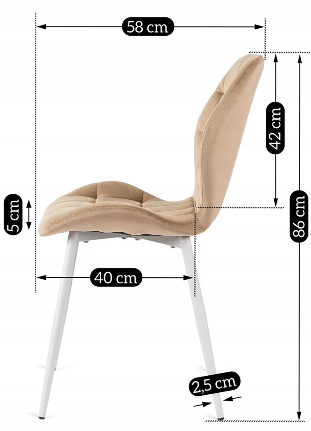 LUCKY bézs színű szék fehér bársony lábakkal