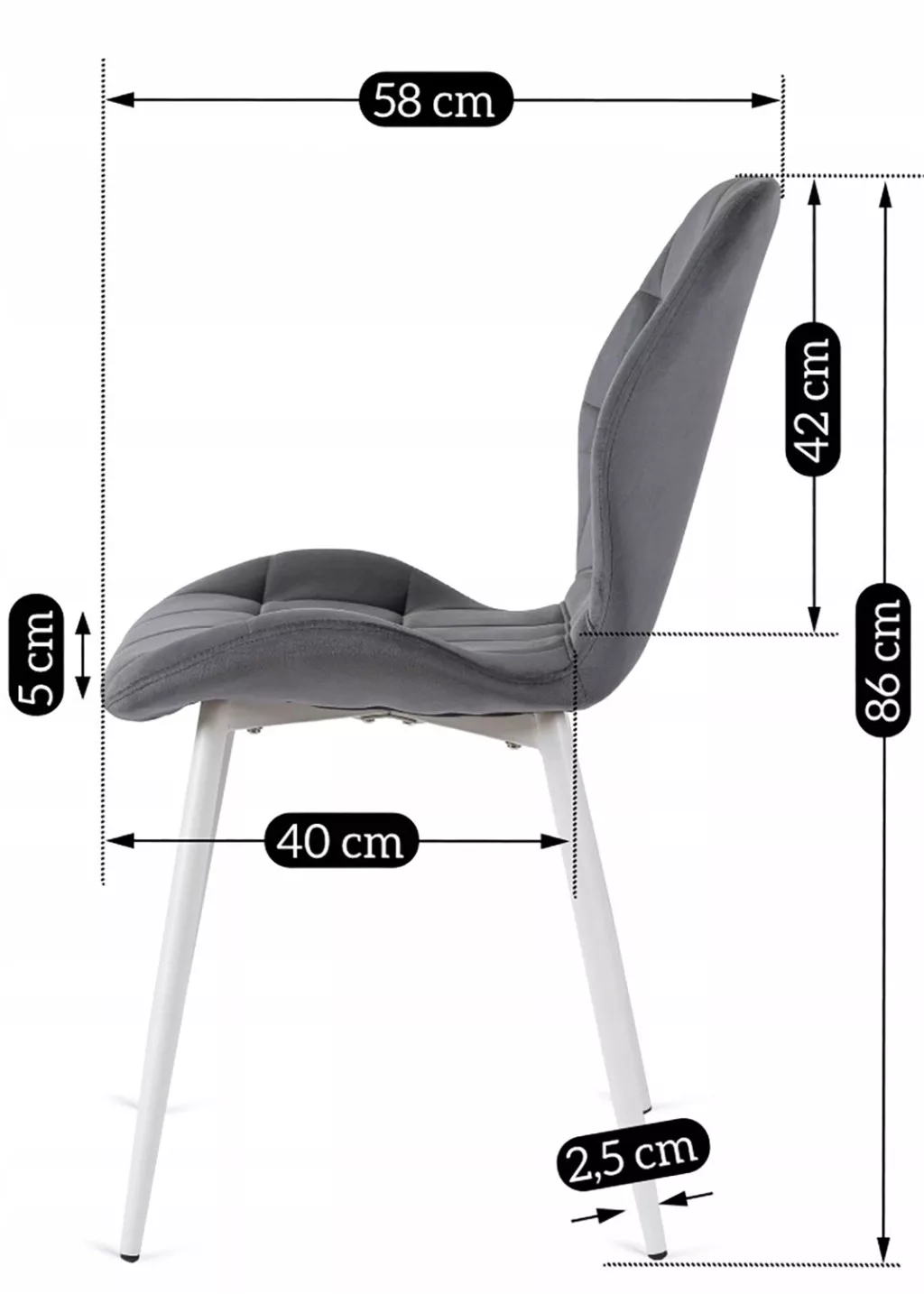 LUCKY szürke szék fehér bársony lábakkal