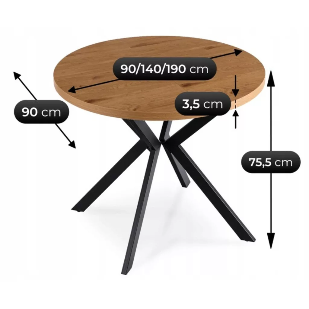 LUGO Kihúzható asztal 90-190 cm Aranytölgy/Fekete