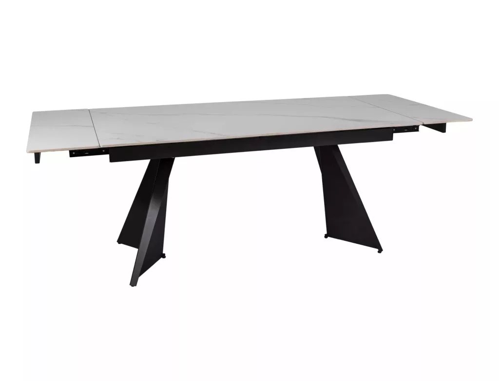Meghosszabbítható asztal, asztallap: kerámia, keret: fém, szín: matt fehér / matt fekete.