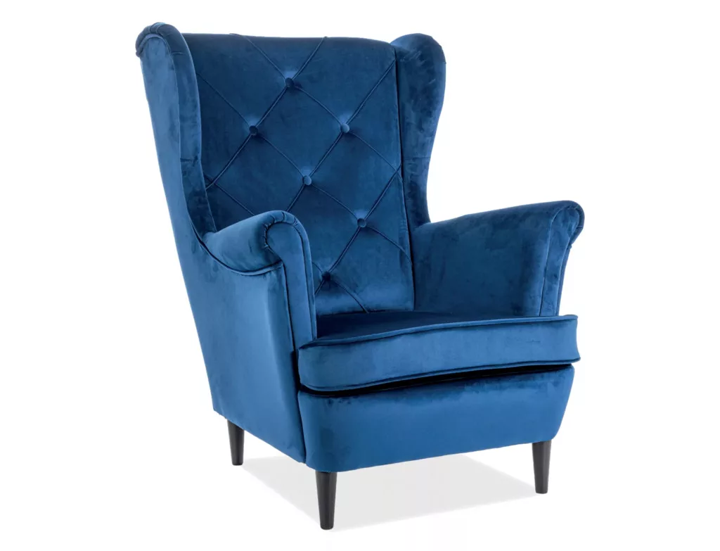 Fotel, bársony szövet, szín: a minta szerint: Bluvel 86 - sötétkék, fa, szín: wenge.