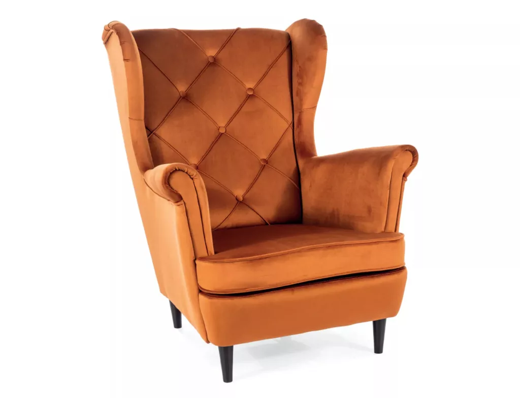 Fotel, bársony szövet, szín: Bluvel 4215 fahéj, fa, szín: wenge.