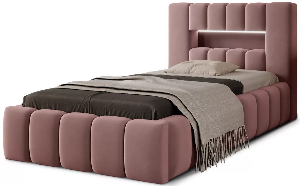 Lamica egy nagyon kényelmes, puha és eredeti, glamour stílusú ágy, amely szokatlan formájával és formájával lenyűgöző. Ez a bútor testből és fa keretből áll. Ágyneműtartó is van hozzá. A hálórész méretei, 90x200 cm, megfelelő helyet biztosítanak a zavartalan pihenéshez. Ágyunk minőségével kiemelkedik, hiszen a magas fejtámla és az ágy oldalai kiegészítő habszivacsból készültek. Az esztétikai élményt fokozza a hosszanti, kiterjedt foltvarrás. A színsémák széles választéka lehetővé teszi, hogy az ágyat az egész szobához igazítsa. További előnye a LED világítású fejtámla, amely még kellemesebbé teszi a pihenést. Itt a modernitás és a modernista kivitel kéz a kézben jár az eleganciával, így a Lamica minden esetben tökéletes választás. Ez egy olyan bútor, amelyet érdemes megvenni.