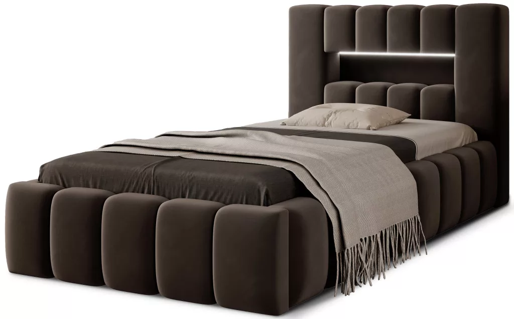 Lamica egy nagyon kényelmes, puha és eredeti glamour stílusú ágy, mely példátlan formájával és formájával lenyűgöz. Ez a bútor testből és fa keretből áll. Ágyneműtartó is van hozzá. A 90x200 cm-es hálófelület mérete megfelelő helyet biztosít a pihentető pihenéshez. Ágyunkat a kivitelezése jellemzi, mivel a magas fejtámla és az ágy oldalai kiegészítő habszivacsból készültek. Az esztétikai élményt fokozza a hosszanti, kiterjedt foltvarrás. A színválaszték széles skálája megkönnyíti, hogy az ágyat az egész szobához igazítsa. További előnye a LED világítású fejtámla, aminek köszönhetően még kellemesebb lesz a pihenés. Ebben az esetben a modernitás és a modern megjelenés kéz a kézben jár az eleganciával, aminek köszönhetően a Lamica mindig ideális választás lesz. Mindenképpen megéri.