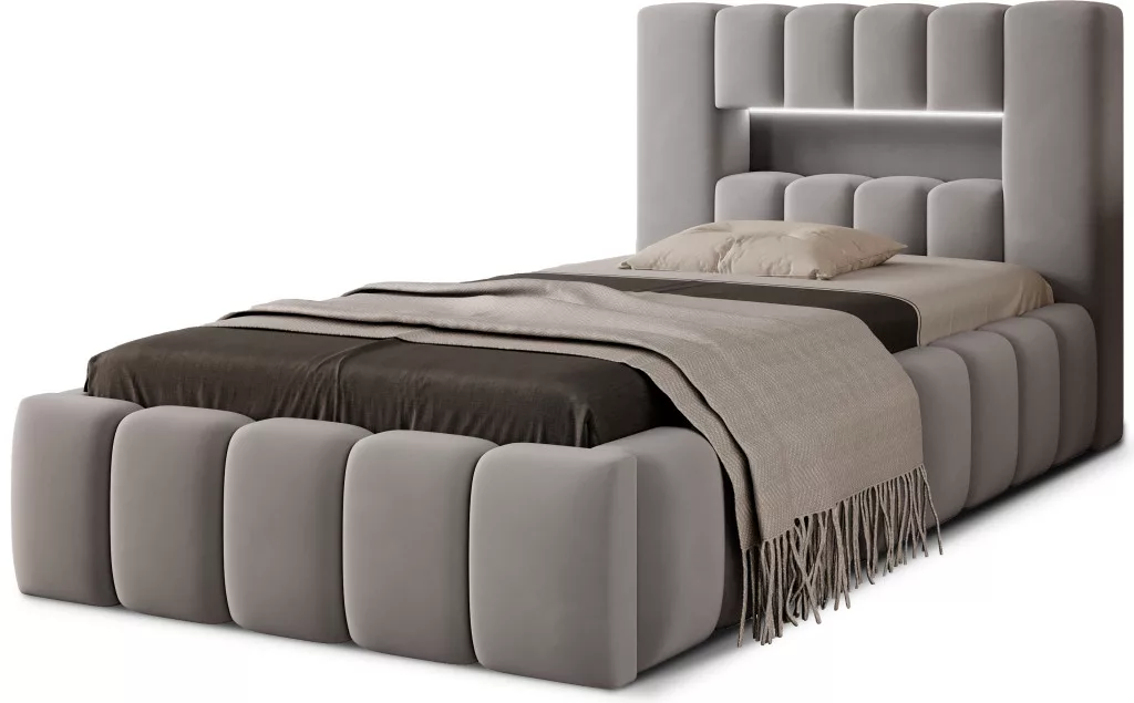 Lamica egy nagyon kényelmes, puha és eredeti, glamour stílusú ágy, amely szokatlan formájával és formájával lenyűgöző. Ez a bútor testből és fa keretből áll. Ágyneműtartó is van hozzá. A hálórész méretei, 90x200 cm, megfelelő helyet biztosítanak a zavartalan pihenéshez. Ágyunk minőségével kiemelkedik, hiszen a magas fejtámla és az ágy oldalai kiegészítő habszivacsból készültek. Az esztétikai élményt fokozza a hosszanti, kiterjedt foltvarrás. A színsémák széles választéka lehetővé teszi, hogy az ágyat az egész szobához igazítsa. További előnye a LED világítású fejtámla, amely még kellemesebbé teszi a pihenést. Itt a modernitás és a modernista kivitel kéz a kézben jár az eleganciával, így a Lamica minden esetben tökéletes választás. Ez egy olyan bútor, amelyet érdemes megvenni.