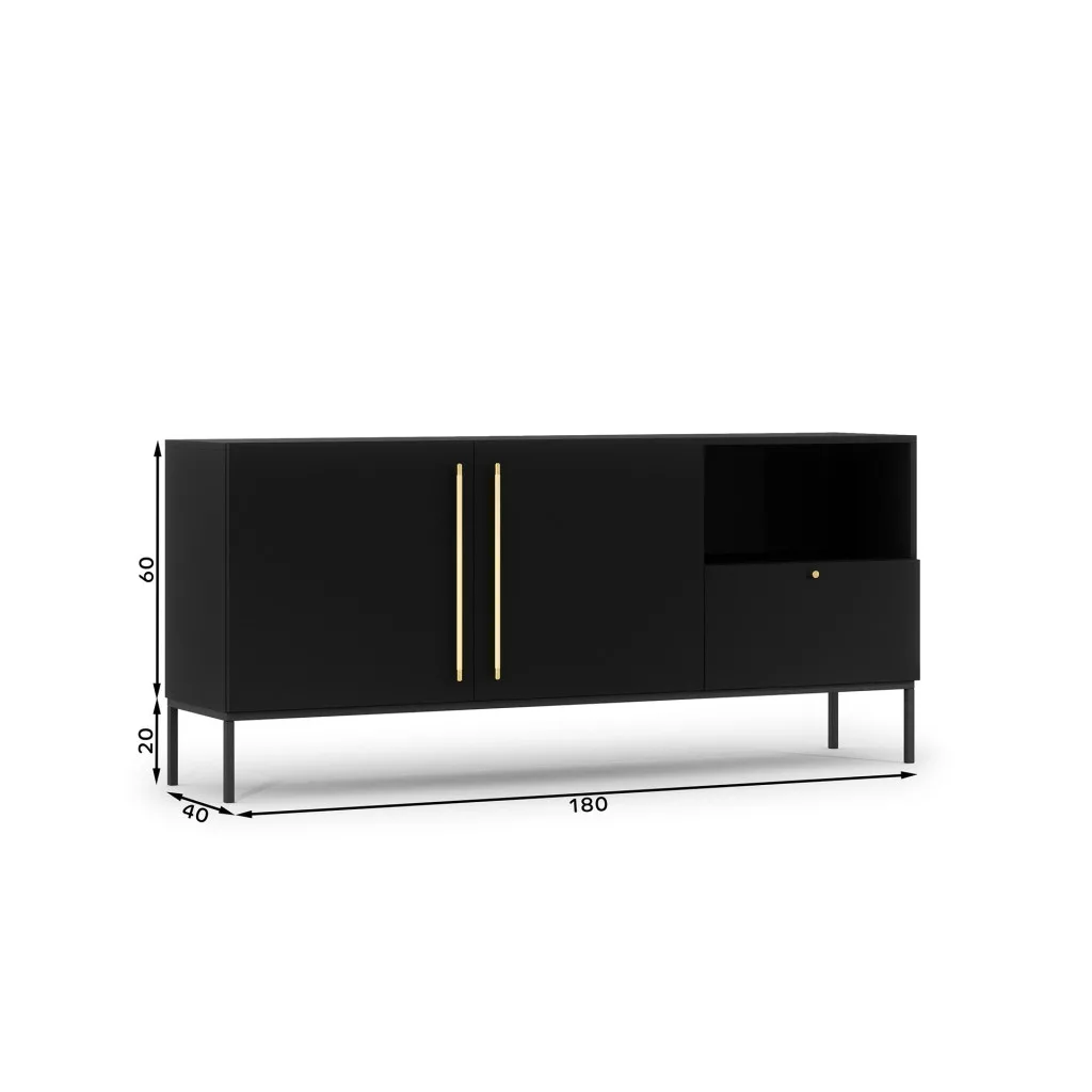 Lanzzi 180 komód fekete matt, black matt komód, fekete