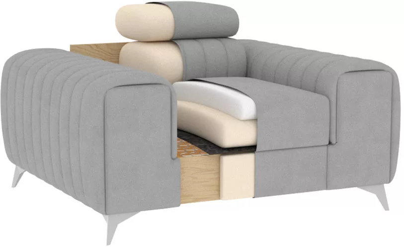 Laurence fotel egy elegáns és kényelmes bútor, amely nemcsak dizájnos megjelenésével, hanem kiváló tulajdonságaival is lenyűgöz. A maximális kényelmet szem előtt tartva tervezték, ez a fotel a pihenés igazi oázisa lesz az Ön belső terében. Lenyűgöző méretei, 125 cm széles és 97 cm mélysége bőséges ülőhelyet biztosít. A fotel változó magassága, 55-75 cm, lehetővé teszi az egyéni felhasználói preferenciákhoz való igazítást. Eközben a 35 cm-es ülésmagasság kényelmes ülőhelyzetet biztosít. 55 cm-es ülésmélységével megfelelő háttámaszt és kényelmes tartást garantál. A Laurence fotel különböző magasságú felhasználók számára készült, ezért a háttámla magassága 30-45 cm között állítható. Ez lehetővé teszi a testreszabást a személyes preferenciák szerint, és optimális gerinctámaszt biztosít. Az állítható fejtámlával felszerelt, testre szabott nyak- és fejtámaszt tesz lehetővé, további kényelmet biztosítva pihenés közben. A krómozott acélból készült, 9 cm-es masszív lábak nemcsak eleganciát adnak a fotelnek, hanem stabilitást és tartósságot is biztosítanak. A Laurence fotel nem csak a kivételes megjelenéséről szól, hanem a masszív felépítéséről is. Az ülés T30 sűrűségű poliuretán habbal van feltöltve HR habbal kombinálva, amely tökéletesen illeszkedik a testhez, puhaságot és kényelmet biztosít. A háttámla viszont T2540 sűrűségű habbal van feltöltve, így biztosítva az optimális háttámaszt. A dekoratív varrások finom eleganciát adnak, kiemelve annak egyedi karakterét. Ami még jobb, hogy a Laurence fotel tökéletesen kiegészíti a Laurence sarokkanapét, tökéletes bútorkészletet alkotva az enteriőrbe. Ez lehetővé teszi, hogy összefüggő és harmonikus elrendezést hozzon létre, amely minden vendégét lenyűgözi. A Laurence fotel a stílus, a kényelem és a funkcionalitás ötvözete, amely még pihentetőbbé és élvezetesebbé teszi a pihenést.​