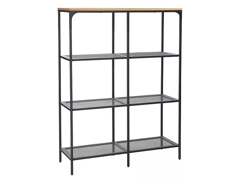 Könyvespolc, polcok: laminált bútorlap + fém, keret: fém, szín: fekete / tölgy / matt fekete.