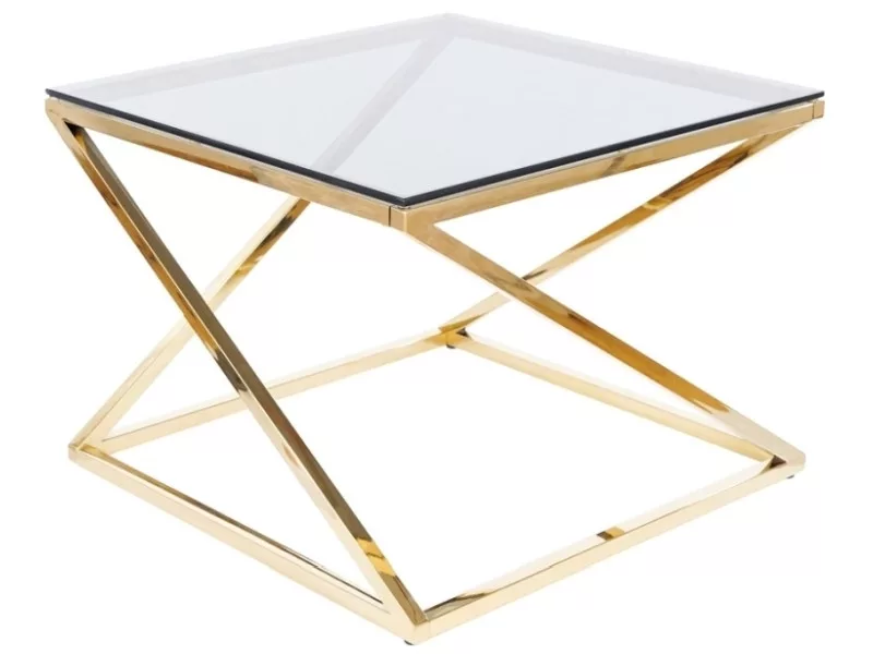 Dohányzóasztal, teteje: füstölt edzett üveg, keret: rozsdamentes acél, szín: arany.