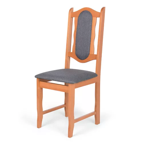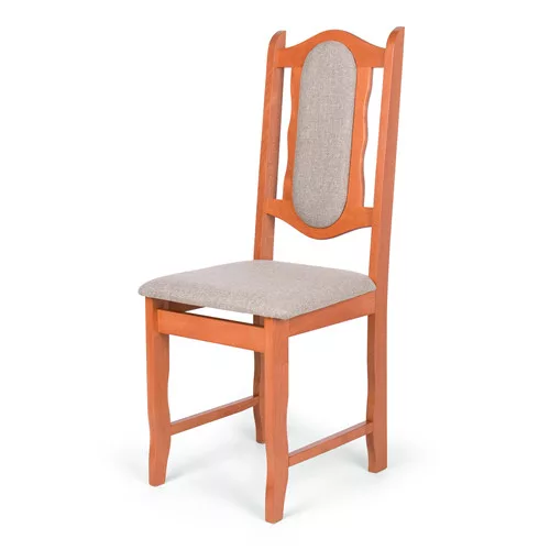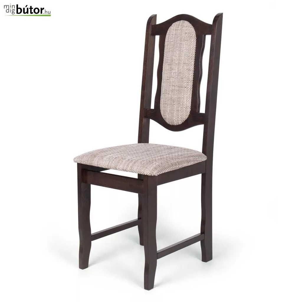 Lakkozott vázú, szövet kárpitos étkezőszék.