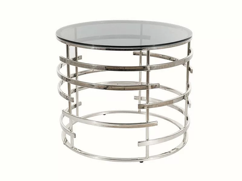 Dohányzóasztal, teteje: füstölt edzett üveg, keret: rozsdamentes acél, szín: ezüst.