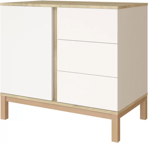 A babaszoba elengedhetetlen eleme. Úgy lett kialakítva, hogy viszonylag kis helyen is elférjen, mégis a lehető legnagyobb segítséget nyújtsa a friss szülőknek. Magassága, pakolófelületei, variálhatósága mind a szülők igényei alapján lettek kialakítva. Nem csak tárolóként funkcionál, hanem egy pelenkázó toldalék vásárlásával pelenkázó komódként használható a komód teteje.