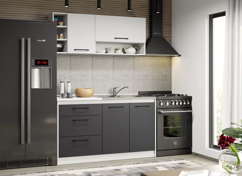 A Lorand konyhablokk alsó, felső, és magas elemei tágas tárolóhelyet biztosít a beépíthető készülékek, és a konyhai eszközök számára. Az elemek 16 mm-es préselt forgácslapból készülnek. A fehér és az antracitszürke kombinációja eleganciát és kifinomultságot közvetít.