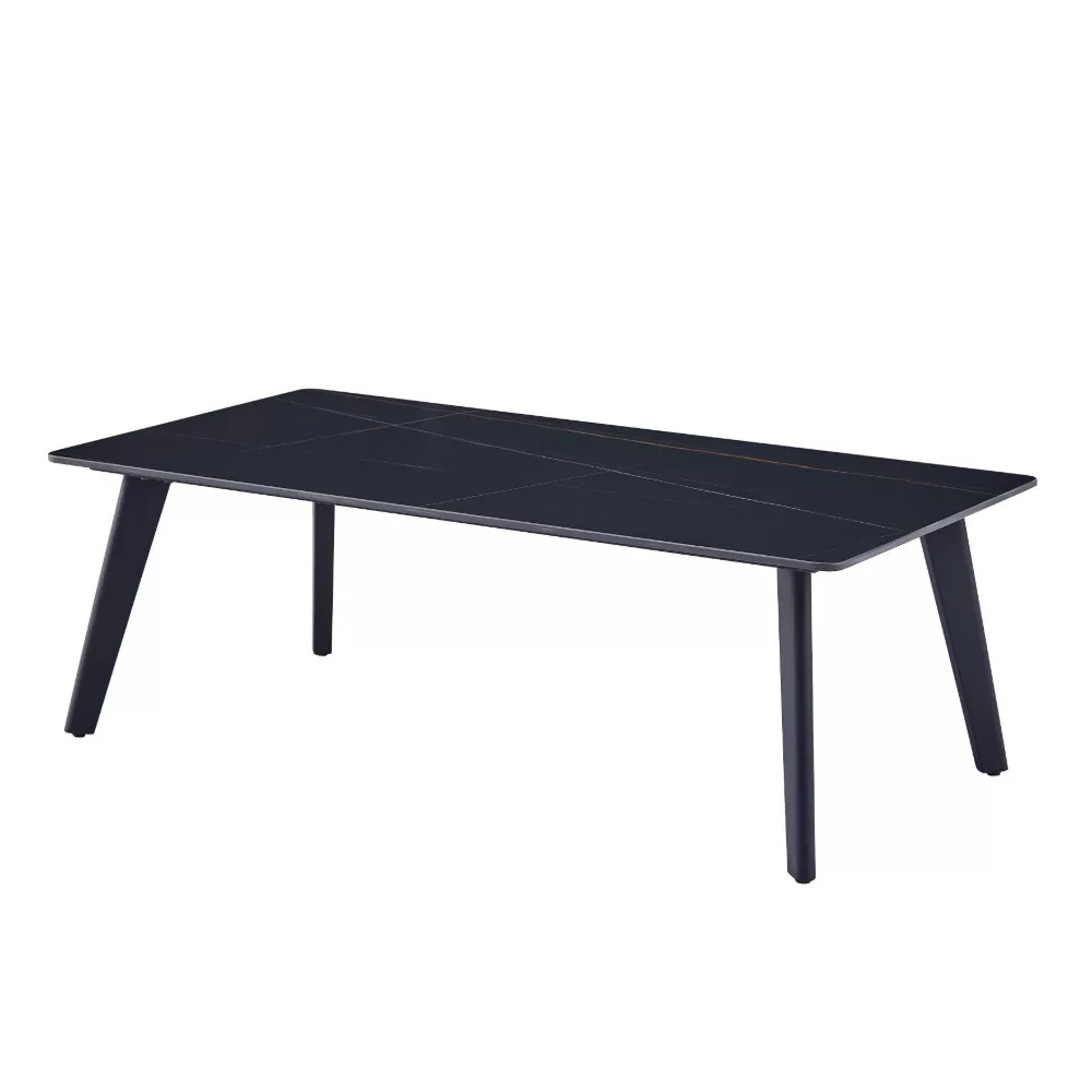 Praktikus dohányzóasztal, Lauren matt fekete színben, gyönyörű márvány mintával. Az asztallap szinterezett kőből készült, 12 mm vastag. A szinterezett kő több különböző színű természetes kő kombinációjából készül, és számos előnnyel rendelkezik a hagyományos kerámiával szemben. Erősebb, mint a monoblokk kerámialapok, és nem olyan könnyen törik.Természetesen vízálló a természetes gránitlapokhoz képest, és környezetbarátabb is, mint a kémiailag kezelt kvarclapok. Az asztallap tartója MDF anyagból készült. A lábak fémcsövekből készültek, és a jobb védelem érdekében fekete színű porfestett bevonattal vannak ellátva. Az asztal maximális teherbírása 120 kg.