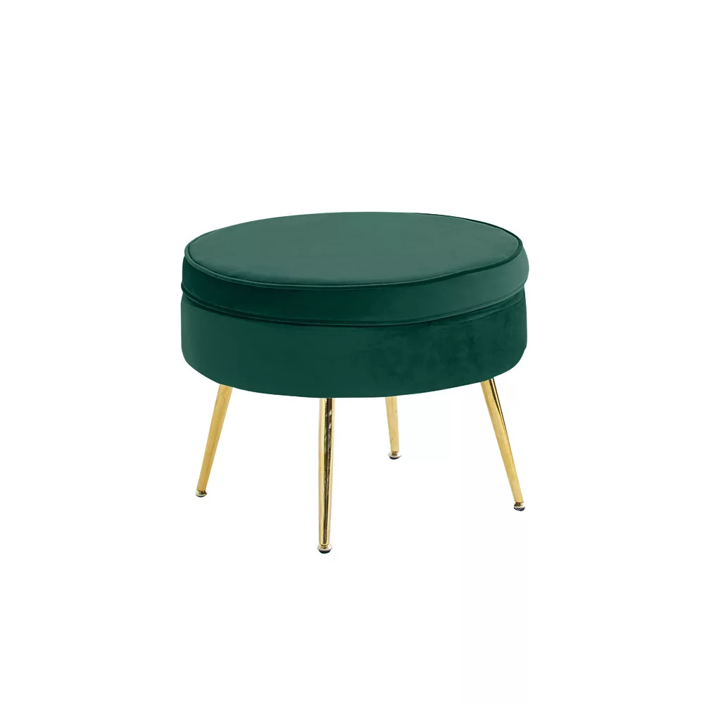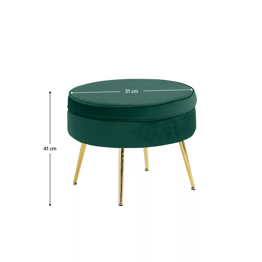 Anyag: Velvet szövet Szövet kopásállósága a Martindale-teszt szerint: 80 000 ciklus Szín: smaragd 18 Lábak anyaga: fém Szín: gold króm-arany Méretek (SzxMa): 51x41 cm Teherbírás: 90 kg A lábak rugalmas talpsapkákkal végződnek a talaj kiegyenlítésére Luxus és dizájnos zsámoly/puff Elegáns kivitelezés a Velvet szövetnek és az arany krómnak köszönhetően Dekoratív átdolgozás Art-deco stílusban Bontásban szállítva