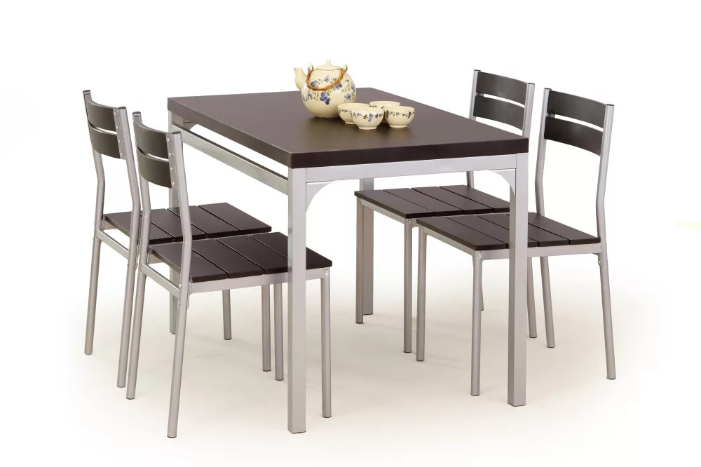 Laminált mdf asztallappal és ülőfelülettel, porszórt acél lábakkal.