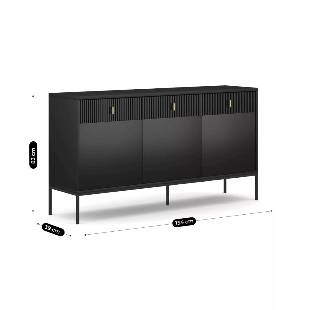 MARCOS Fiókos Komód 154 cm Bordázott Fekete