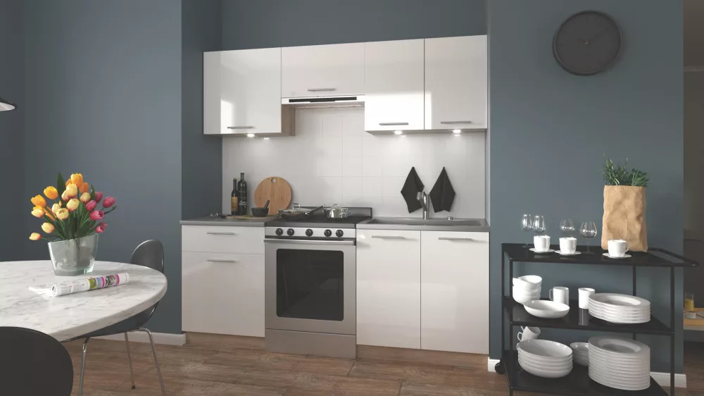 MARIJA konyhablokk, magasfényű fehér, 200 cm