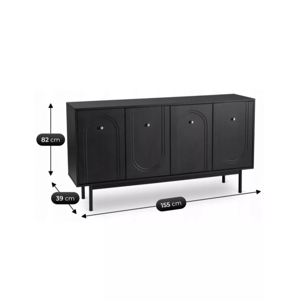 MARLEN Fiókos Komód 155 cm Fekete