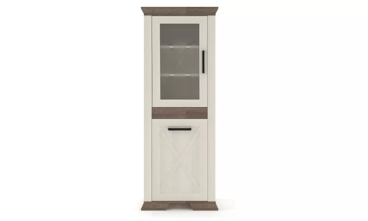 A MARSEL termékcsalád stílusos vitrinje, mely a kőris és a szarvasgomba tölgy színkombinációjának, és a bútor praktikus kialakításának köszönhetően, bármelyik nappaliban megállja a helyét.