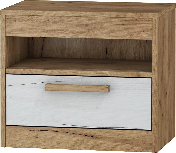 Az MAXIMUS termékcsalád stílusos éjjeliszekrénye, mely a craft fehér és craft arany színek kombinációjának és a bútor praktikus kialakításának köszönhetően, a lakás bármely pontján megállja a helyét.
