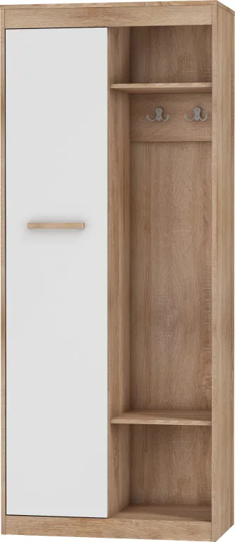 Az MAXIMUS termékcsalád stílusos előszobaszekrénye, mely a fénye fehér/sonoma tölgy színek kombinációjának és a bútor praktikus kialakításának köszönhetően, a lakás bármely pontján megállja a helyét.