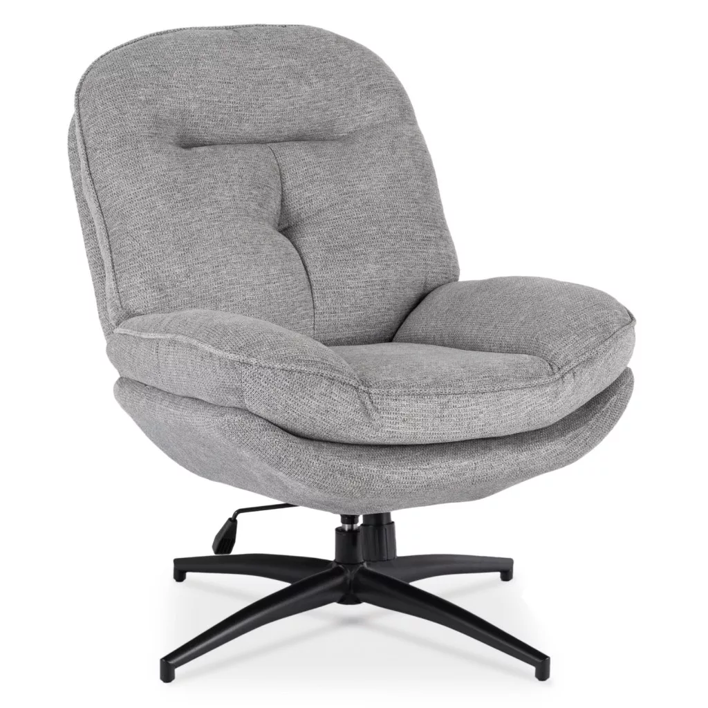 Mesa Gray forgófotel egy elegáns bútordarab, amely bármilyen otthoni dekorációhoz illik. Modern vonalak, kényelmes ülés és finom varrás hangsúlyozzák stílusos jellegét, míg a szürke kárpit kiegyensúlyozott, nyugodt és időtlen megjelenést kölcsönöz a belső térnek. Miért válassza ezt a modellt? Magas kényelem: A széles, puha ülés és a kényelmes háttámla kényelmet biztosít mind a rövid kikapcsolódási pillanatokhoz, mind a hosszabb pihenésekhez. Tartós és kényelmes anyag: A szürke kárpit kopás- és bolyhosodásálló, mégis puha és kellemes tapintású. Ideális mindennapi, intenzív használatra. 360°-os forgatás: A forgó kialakítás szabad mozgást biztosít, és lehetővé teszi az ülés irányának megváltoztatását anélkül, hogy fel kellene állni. Állítható hintamechanizmus: A ringató funkcióval, reteszelő funkcióval és nyomásbeállítással rendelkező funkció lehetővé teszi, hogy a széket az egyéni preferenciákhoz igazítsa. Masszív konstrukció: A stabil alap és a aprólékos kidolgozás garantálja a biztonságot és a tartósságot az elkövetkező évekre. Hol teljesít a legjobban? A nappaliban kényelmes helyként szolgál a kikapcsolódásra kávé, könyv vagy film mellett. A hálószobában hangulatos és elegáns ülőhelyet teremt. Kereskedelmi helyiségekben tökéletes szépségszalonokba, kozmetikai szalonokba és várótermekbe. A Mesa fotel – kényelem, ami különbséget tesz.