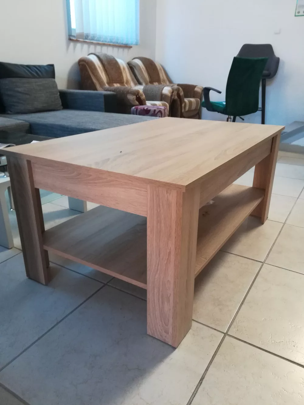 A dohányzóasztal alatti polc pakolás/tárolás szempontjából igen praktikus.