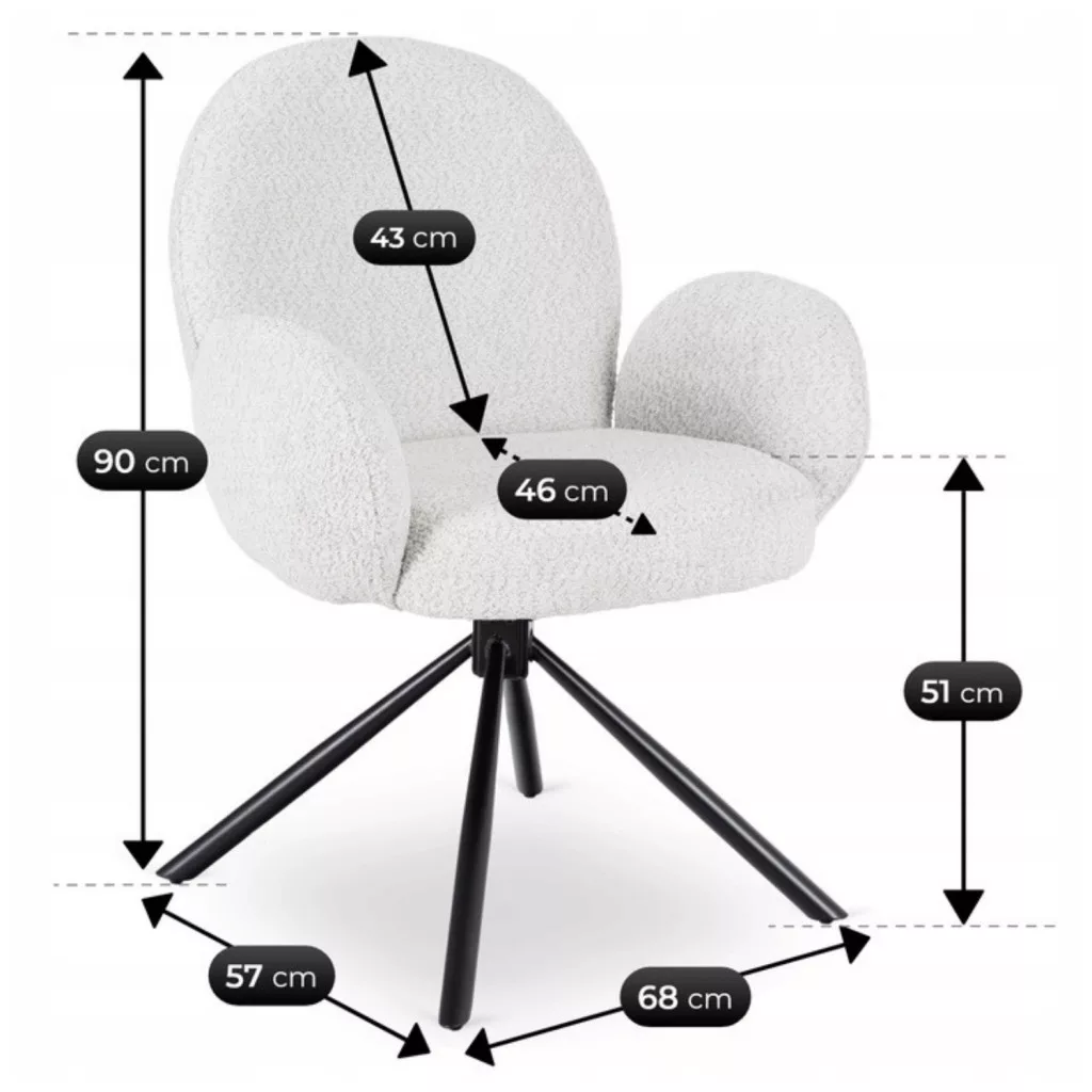 MUSSO Szürke Kárpitozott Forgószék. Olyan bútort keresel, amely a modern megjelenést a mindennapi kényelemmel ötvözi? A Musso szék a klasszikus vödör forma friss feldolgozása – egy forgófunkcióval kiegészítve, amely még kényelmesebbé teszi az asztalnál való használatot. Mi teszi a Musso széket különlegessé? A memóriafunkcióval ellátott 90°-os forgómechanizmus lehetővé teszi a szabad balra és jobbra forgást anélkül, hogy hátra kellene tolni a széket; felálláskor az ülőfelület automatikusan visszatér eredeti helyzetébe. A széles, kényelmes ülőfelület ideális mind a hosszú étkezésekhez, mind a pihenés pillanataihoz. A lekerekített háttámlával és karfákkal ellátott vödör forma stabil háttámaszt és ergonomikus testtartást biztosít. A teddy stílusú kárpitozás puha és kellemes tapintású, mégis ellenáll a bolyhosodásnak, így tökéletes intenzív használatra. A tartós fém lábazat garantálja a szerkezeti stabilitást. A Musso szék tökéletes az étkezőbe a közös étkezések és beszélgetések során, a nappaliba elegáns kiegészítőként az asztalnál vagy egy kávézósarokban, valamint a konyhába a konyhaszigeten vagy az asztalnál, ahol a mobilitás és a könnyű forgatás kulcsfontosságú. Tökéletes azok számára, akik értékelik a modern, hangulatos belső tereket, és a mindennapi használat során kényelmet várnak el. Válaszd a Musso széket, és nézd meg, hogyan alakíthatja át otthonod!