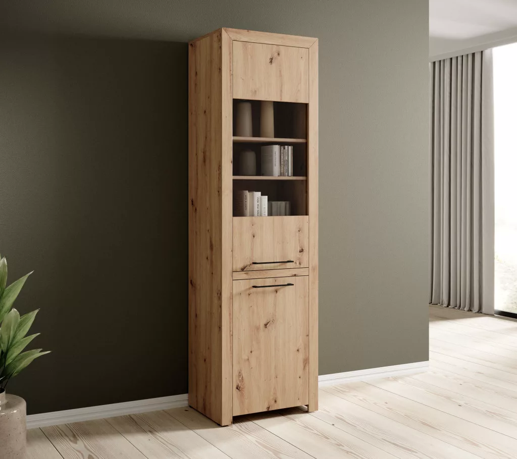 Stylus vitrin a JANEZ kollekcióból biztosan megváltoztatja otthonod hangulatát. Az üvegajtók mögött mély polcok találhatók, amelyek lehetővé teszik értékes emléktárgyak vagy családi fotók kiállítását, a tágas szekrény pedig további tárolóhelyet biztosít. A JANEZ kollekció biztosan illeszkedik a legtöbb elrendezésbe, modern és elegáns dizájnt kölcsönözve a helyiségnek. Javasoljuk, hogy ismerkedjen meg a JANEZ kollekció további elemeivel is, amelyek segítségével ízlésesen berendezheti otthonát.