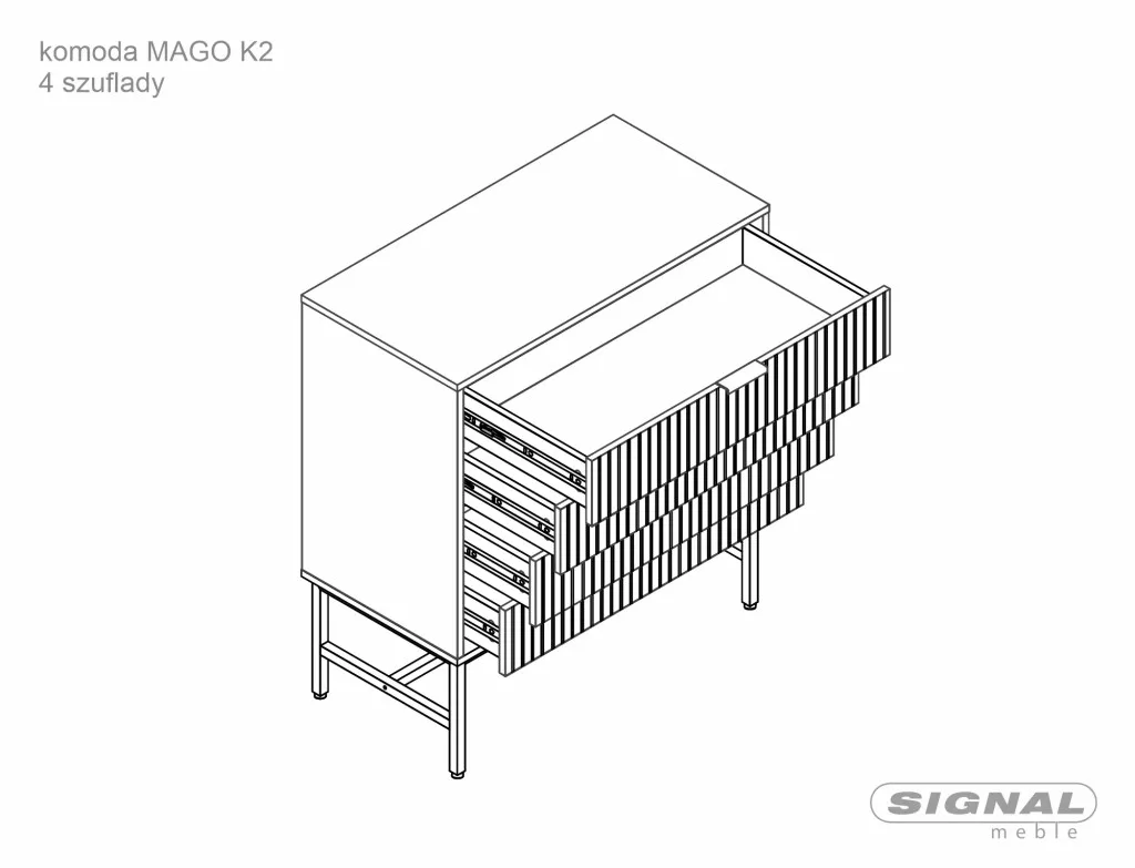 Fedezd fel a modern stílusú Mago K2-t komód, amely tökéletes kiegészítője lehet otthonodnak, szó hálószobáról vagy nappaliról. A laminált lapból készült bútor elegáns tölgy színben és fekete matt fémkerettel rendelkezik, így nemcsak praktikus, hanem esztétikus választás is. A 32 cm magas lábak biztosítják a stabilitást, így a komód elegáns megjelenése feldobja a helyiséget.