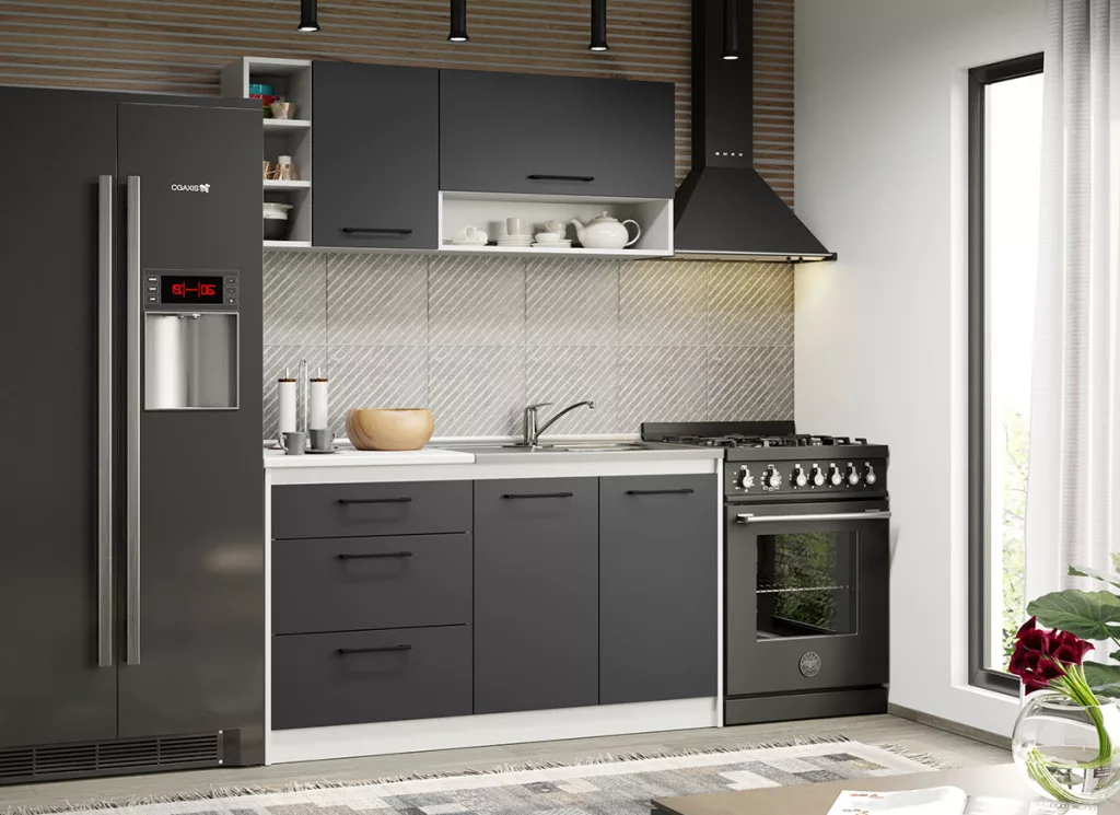 A Maia kollekció modelljeinek, alsó és felső elemei tágas tárolóhelyekkel rendelkezik a konyhai edények számára. Az elemek 16 mm-es préselt bútorlapból készülnek. Az antracitszürke felület eleganciát és kifinomultságot közvetít.