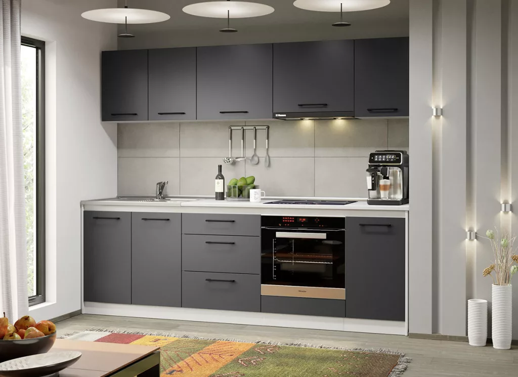A Maia kollekció modelljeinek, alsó és felső elemei tágas tárolóhelyekkel rendelkezik a konyhai edények számára. Az elemek 16 mm-es préselt bútorlapból készülnek. Az antracitszürke felület eleganciát és kifinomultságot közvetít.