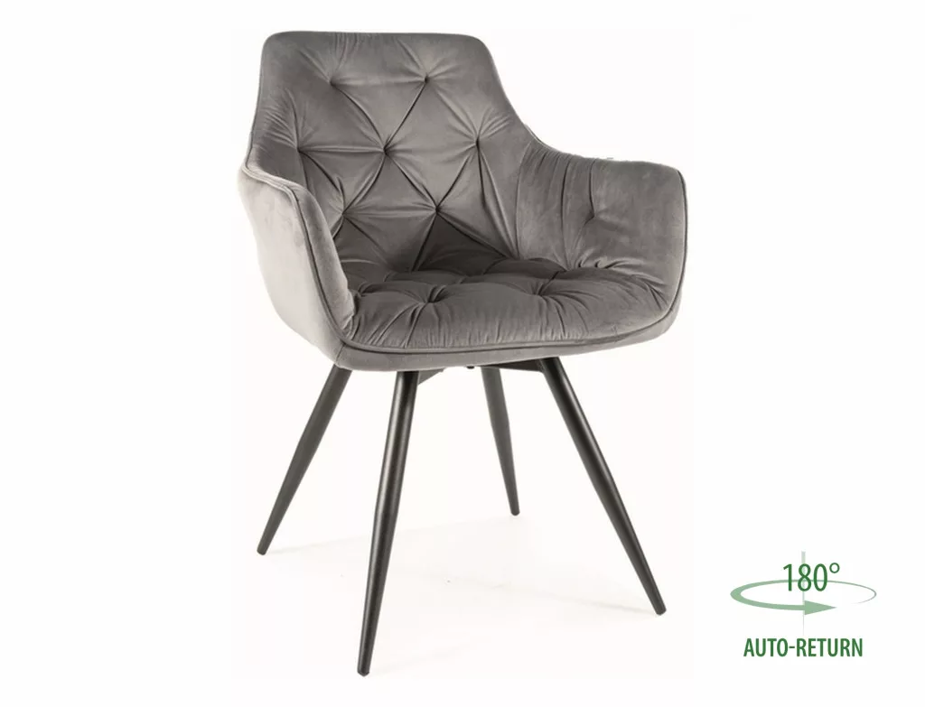 Szék, Bluvel bársony szövet, szín: szürke 14, váz: fém, matt fekete. Az ülés 180 fokban elforgatható, visszaforgató funkcióval.