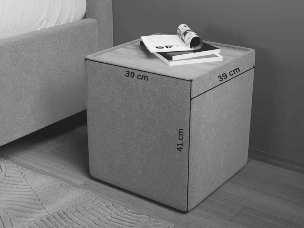 Minden éjjeliszekrény mindennapi használatra készült, ideális felületet biztosítva lámpának, telefonnak, könyvnek vagy dísztárgyaknak. A szett 2 egyforma éjjeliszekrényt tartalmaz, amelyek tökéletesen szimmetrikusan elhelyezhetők az ágy mindkét oldalán, biztosítva a vizuális egyensúlyt és a funkcionalitást.