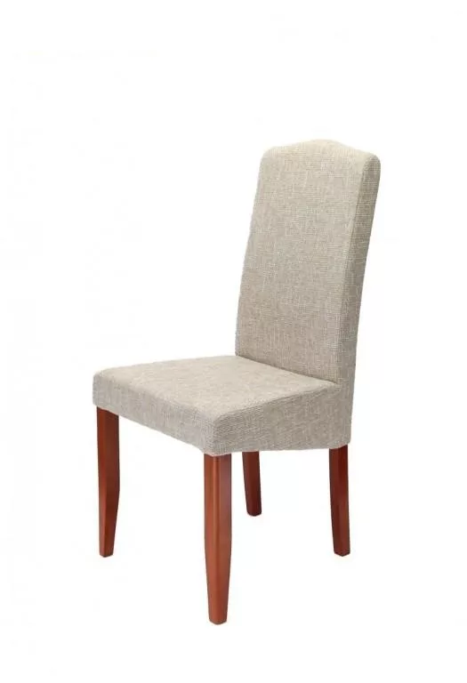 Tömörfa szerkezet pácolva, lakkozva, textil kárpitos hát és ülőlappal.