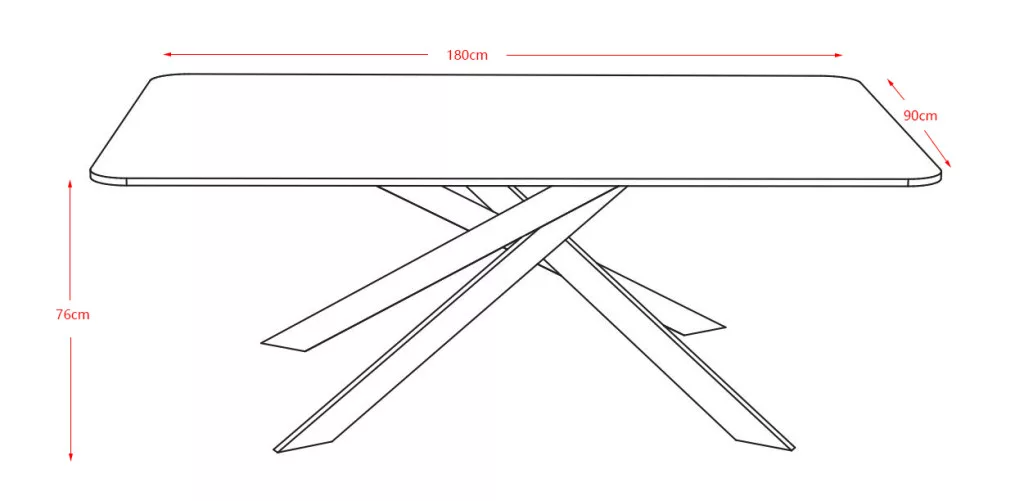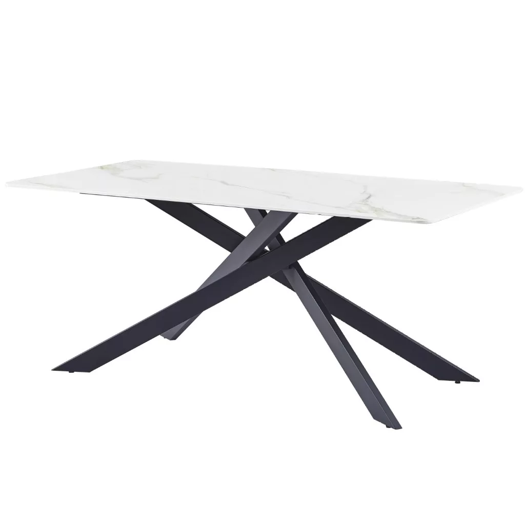 Gyönyörű étkezőasztal, amely a modern stílust ötvözi a fehér márvány klasszikus megjelenésével, egy csipetnyi arannyal. Az asztallap 12 mm vastag, szinterezett kőből készült, gyönyörű márványmintával Kass arany és fehér színben, magasfényű kivitelben. A szinterezett kő több különböző színű természetes kő kombinációjából készül, és számos előnnyel rendelkezik a hagyományos kerámiával szemben. Erősebb, mint a monoblokk kerámialapok, és nem olyan könnyen törik. Természetesen vízálló is a természetes gránitlapokkal összehasonlítva, és környezetbarátabb, mint a kémiailag kezelt kvarclapok. Az asztallap tartója MDF anyagból készült. A "spyder" kialakítás lábai fémcsövekből készültek, mérete 30x80 mm, és a jobb védelem érdekében fekete színű porfestett bevonattal vannak ellátva. Az asztal két különböző méretben kapható. Az asztal maximális teherbírása 120 kg.