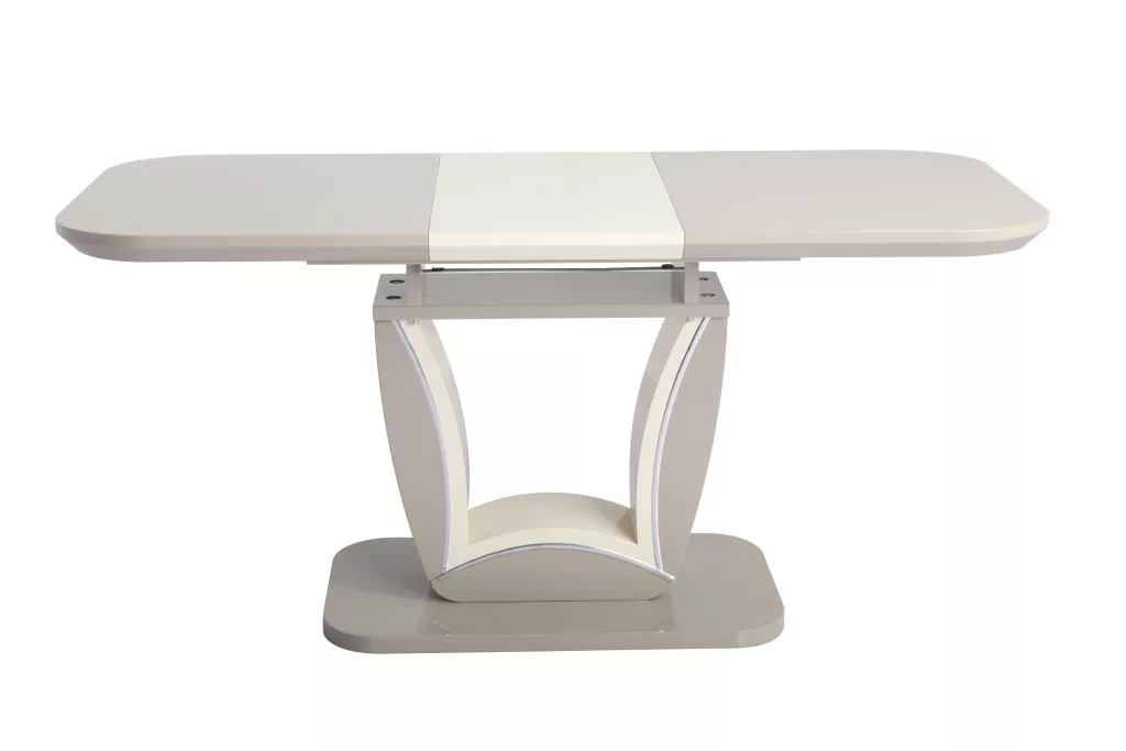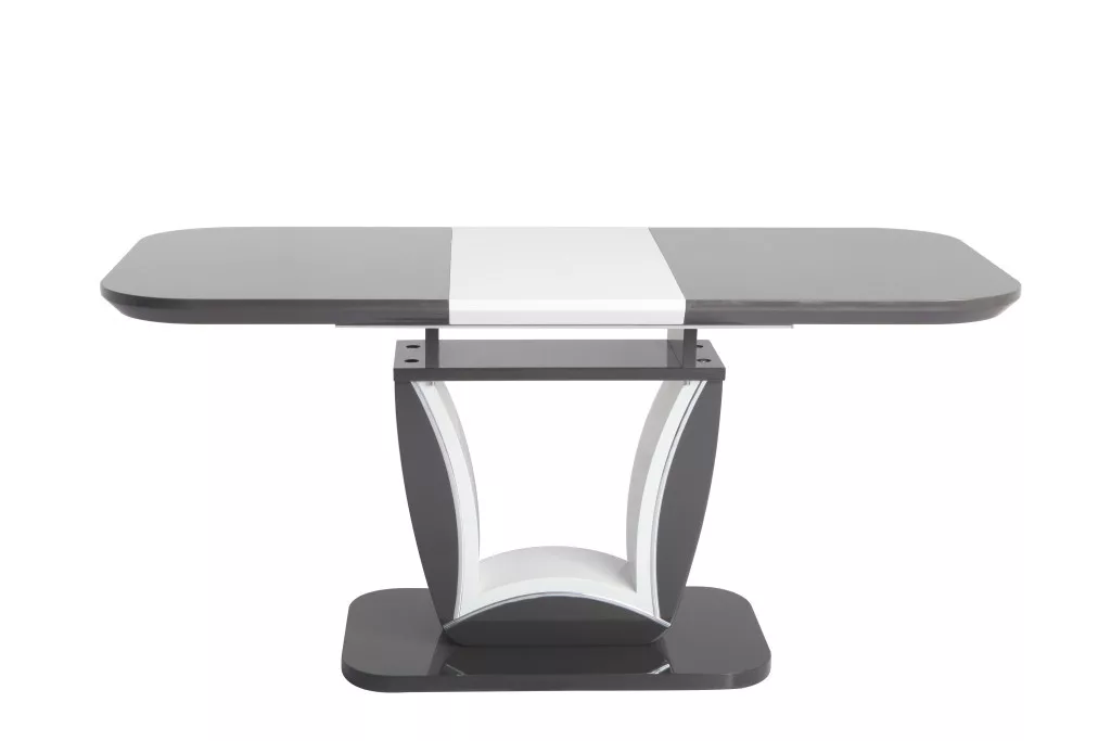 Az asztal lapja magas fényűre festett MDF, bővítése speciális billenő mechanikával és erős bovdenes vasalattal történik.