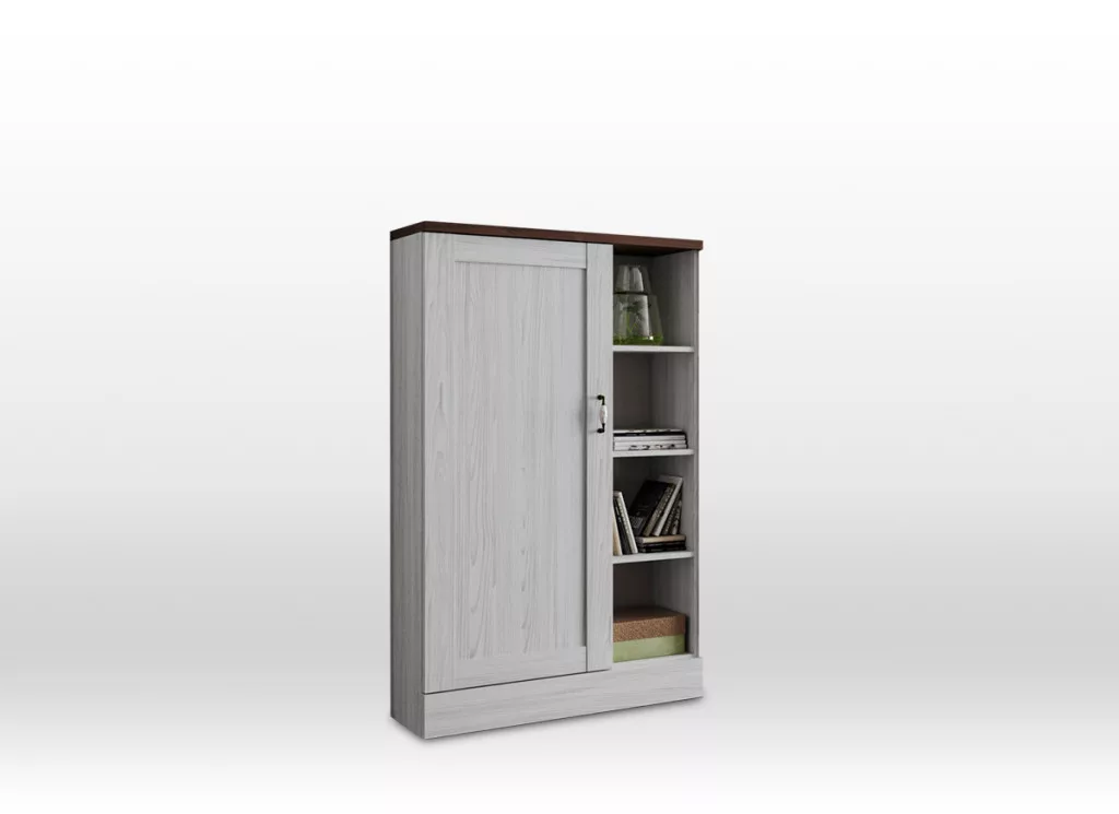 2 polcos tárolóhellyel és egy lengőajtóval rendelkezik. 16 mm-es melamin forgácslapból