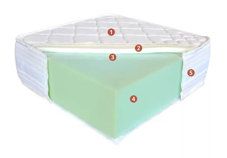 4. 17 cm ortopédiai poliuretán kemény mag (30 kg/m3 sűrűség, 3.8 kPa nyomás)
