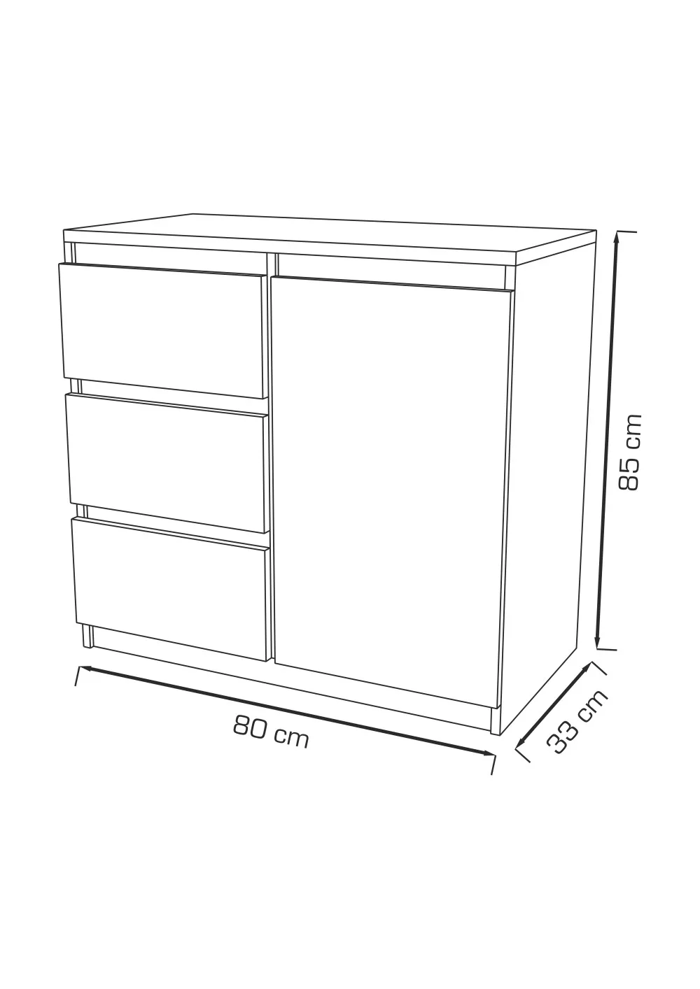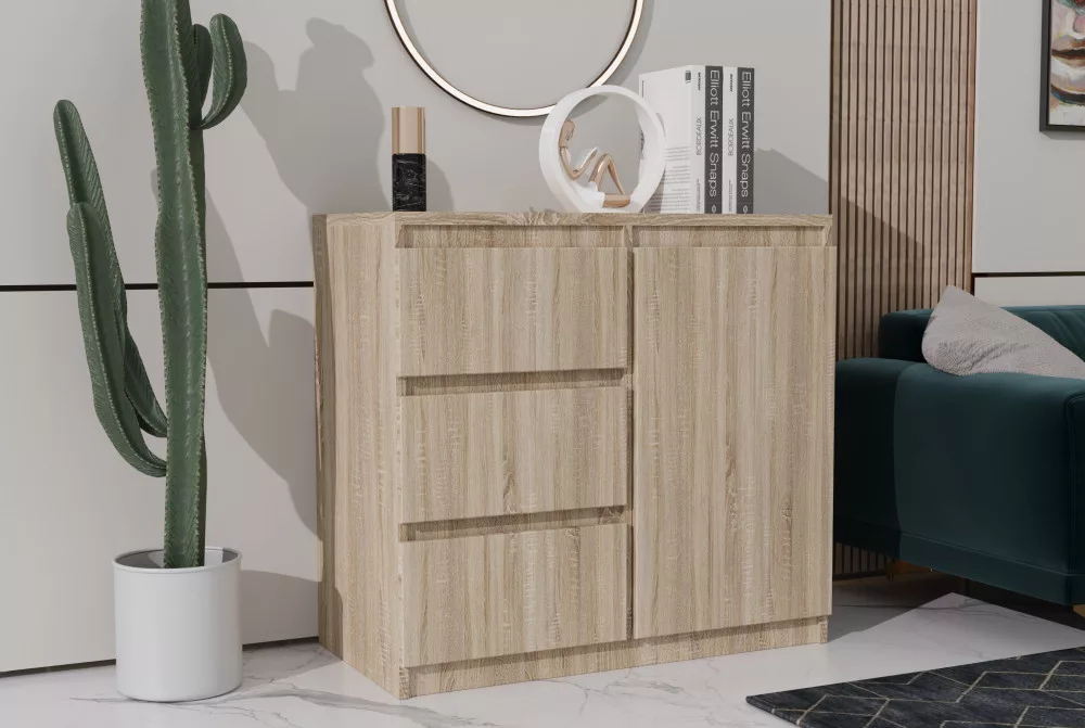 Merg 1 ajtós - 3 fiókos komód sonoma színben