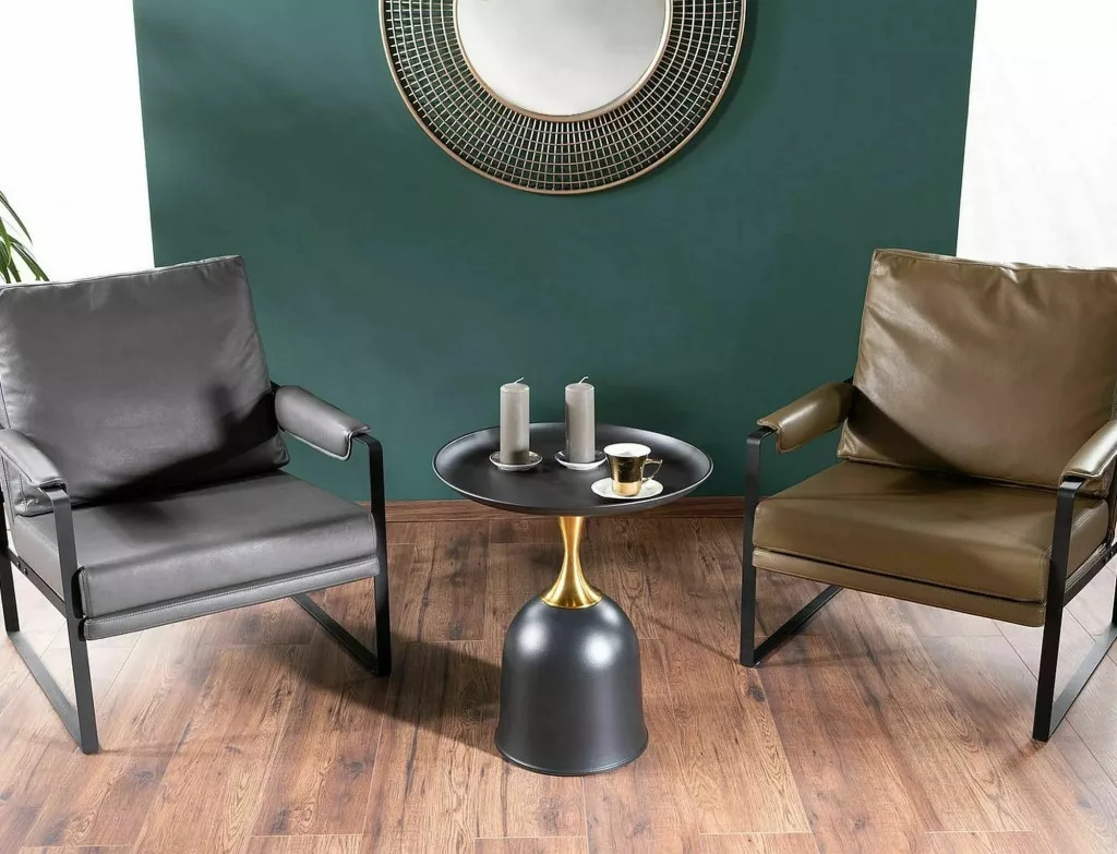 Fedezd fel a modern eleganciát a Ława Libra asztallal, amely tökéletes kiegészítője lehet nappalidnak vagy hálószobának. A fekete matt fém felület és a gyönyörű aranyozott részletek harmonikus kontrasztot alkotnak, így egyedülálló stílust kölcsönöz otthonodnak. Ez a bútor nemcsak praktikus, hanem esztétikai élményt nyújt, ideális választás a mai trendek kedvelőinek.