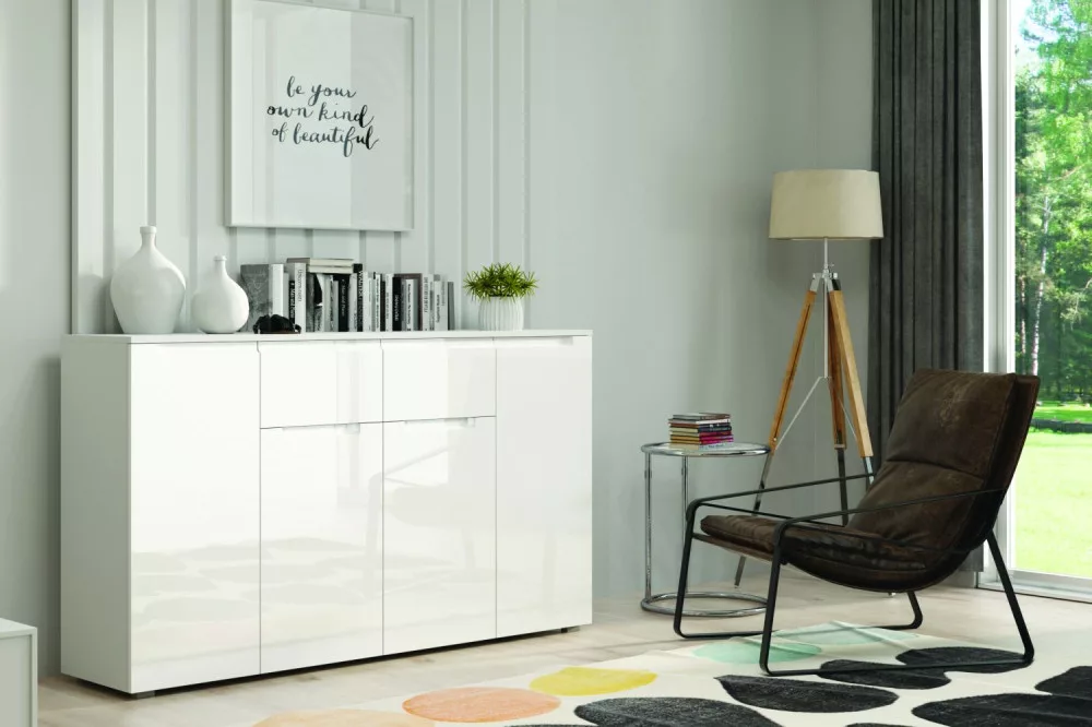 A Messa 3 komód nagyszerű választás nappaliba, étkezőbe vagy a hálószobába. A fehér színének köszönhetően a szekrény kombinálható sok más bútorral.