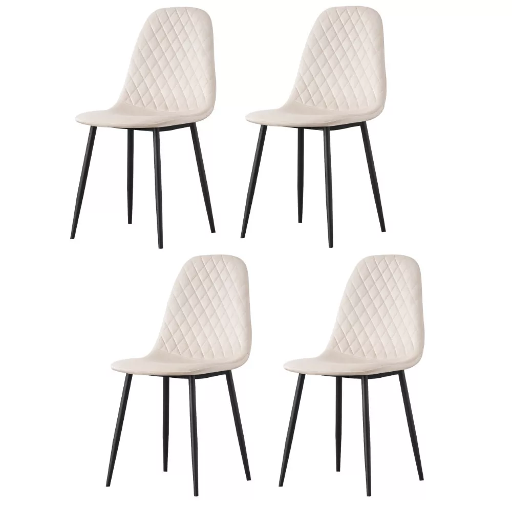 Egyszerű étkezőszék, többféle színben kapható. A szék minőségi szövettel kárpitozott, a háttámlára pedig rombusz alakú díszvarrások vannak varrva. A háttámla magassága 43 cm. Az ülőfelület szélessége 44 cm, mélysége 39 cm és vastagsága 4 cm. A szék alapja fémből készült és porfestett a jobb védelem érdekében, fekete színben. A szék maximális terhelhetősége 120 kg.