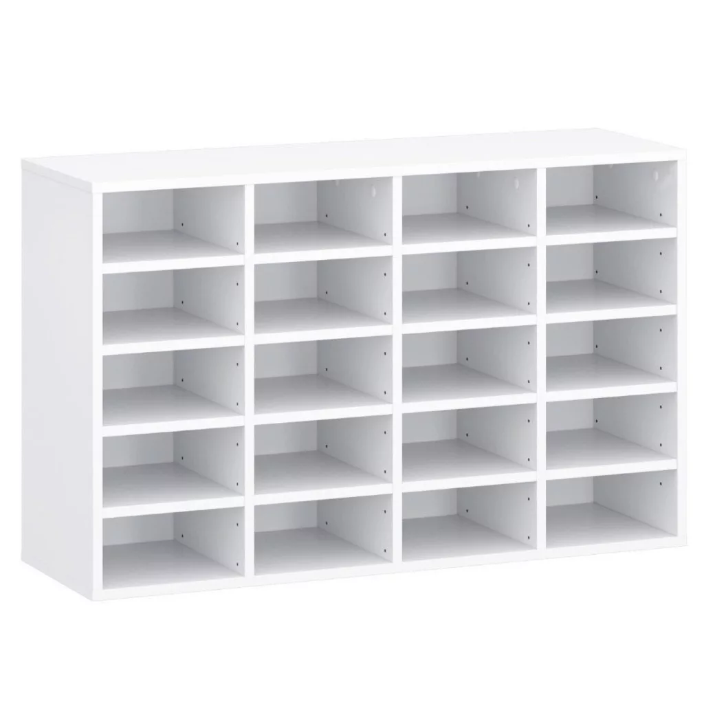 Teljesen fehér cipőtartó, amely 12-20 pár cipő számára biztosít helyet, a polcok elrendezésétől függően. A polcok magassága állítható, és különböző cipőmagasságokhoz igazíthatók. A polcok maximális teherbírása 5 kg. A teljes szekrény kiváló minőségű, 16 mm vastag forgácslapból készült, melamin bevonattal a könnyebb tisztíthatóság és a környezetvédelem érdekében.