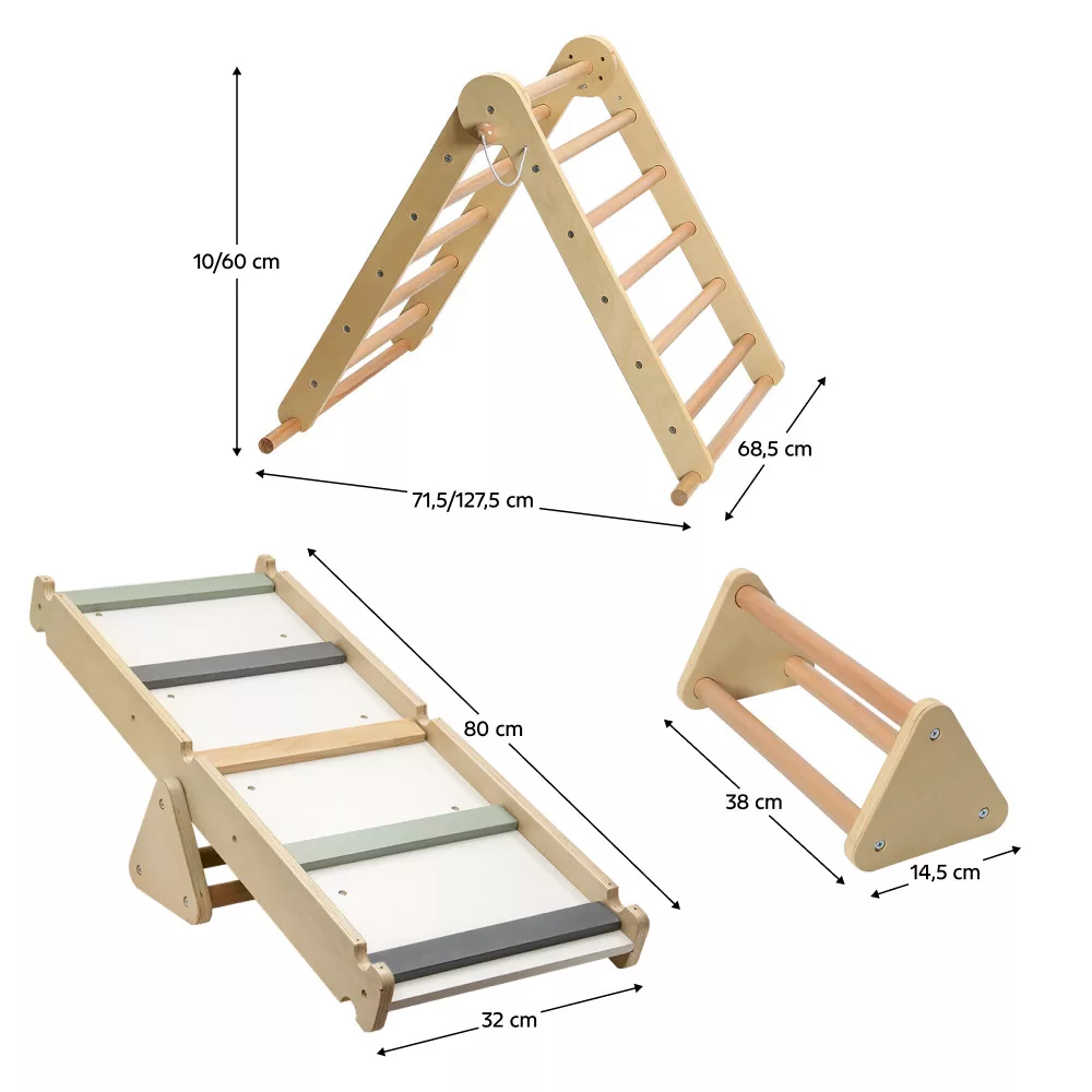 Montessori Pikler-háromszög 3 az 1-ben, természetes/színes, OPRIN