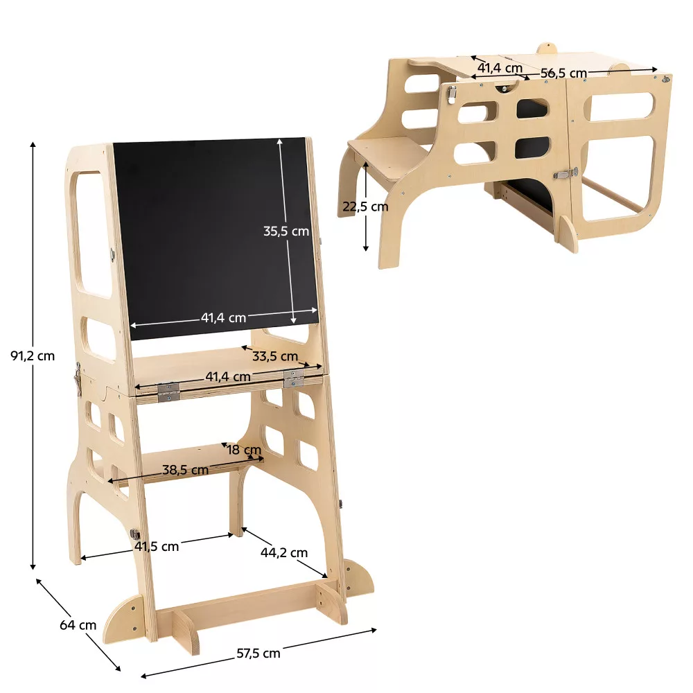 Montessori tanulótorony 3 az 1-ben táblával, természetes, MAGAN