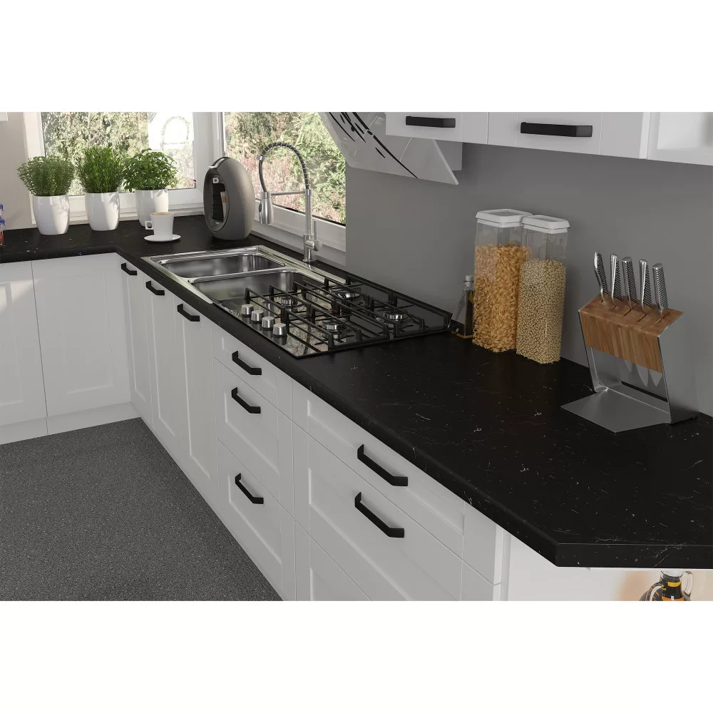 Az alsó szekcionált szekrényeket alsó szegéllyel (lábazat) szállítjuk, munkalap nélkül. A 3,8 cm vastagságú artisan tölgy munkalap vásárlási lehetőség, ár: 33 500 Ft/fm. A 3,8 cm vastagságú marmur roma munkalap vásárlási lehetőség, ár: 31500 Ft/fm.