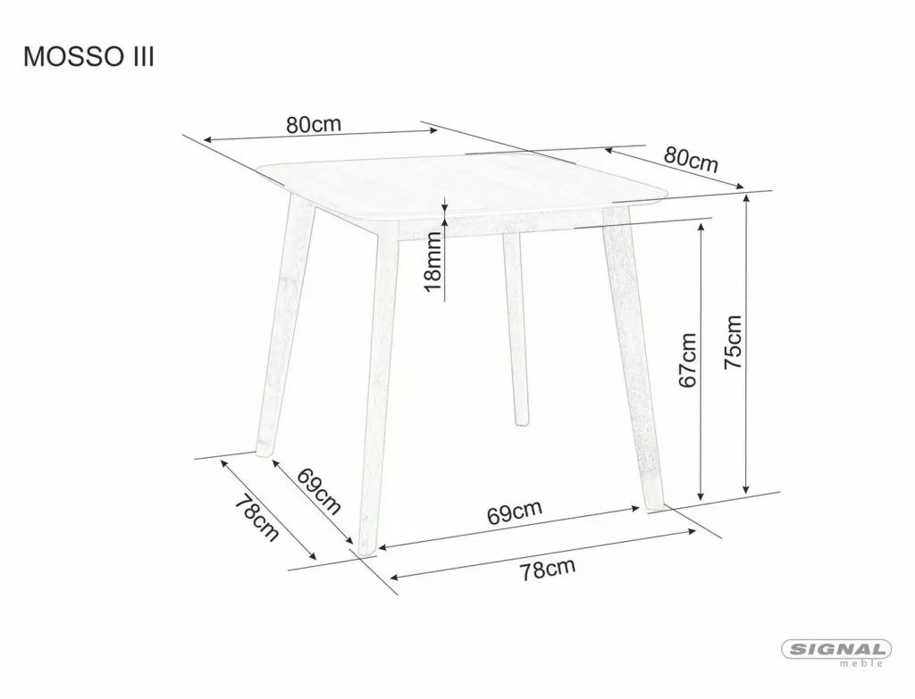 Mosso III asztal, 80X80, tölgy, tölgy