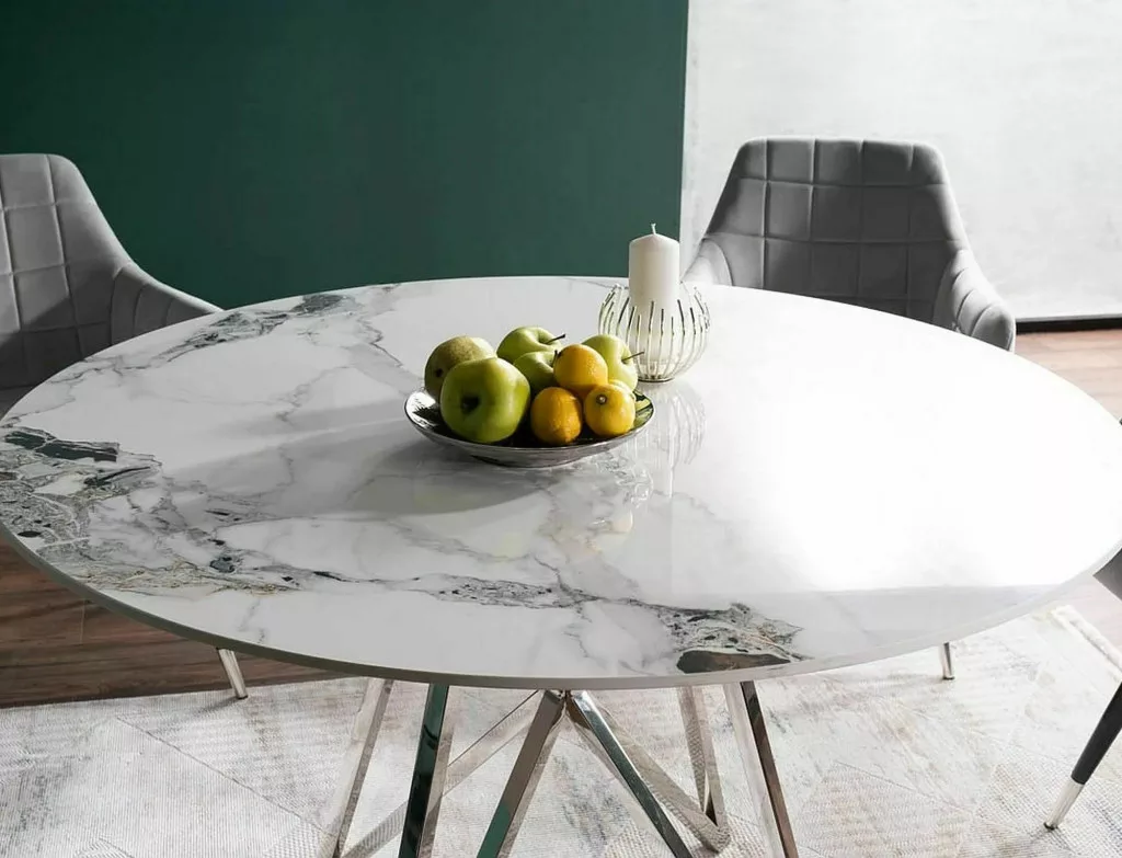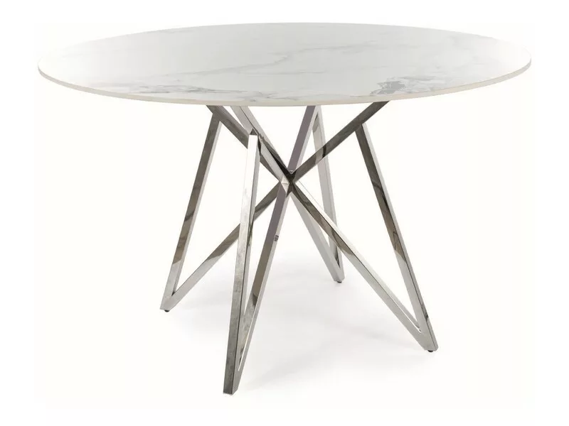 Asztallap: kerámia, márványhatású, keret: fém, szín: fehér / króm.